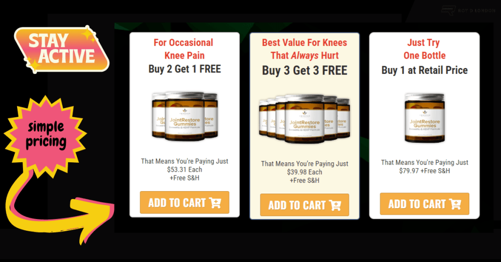 Each of these Joint Restore Gummies offers different strengths and formulations, catering to individual preferences and needs. Whether you prefer higher potency gummies or a more moderate dosage, this is the gummy for you. It’s important to note that the prices listed are approximate and may vary depending on promotions and discounts.